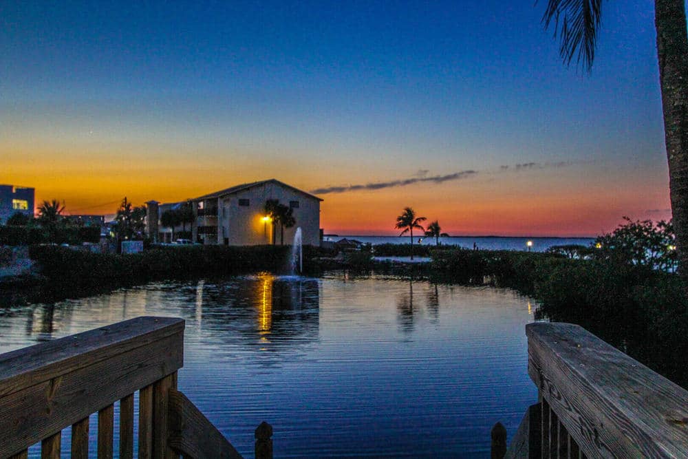 The pool area at Florida Bay Club, has some of the best views day and night in Key Largo.